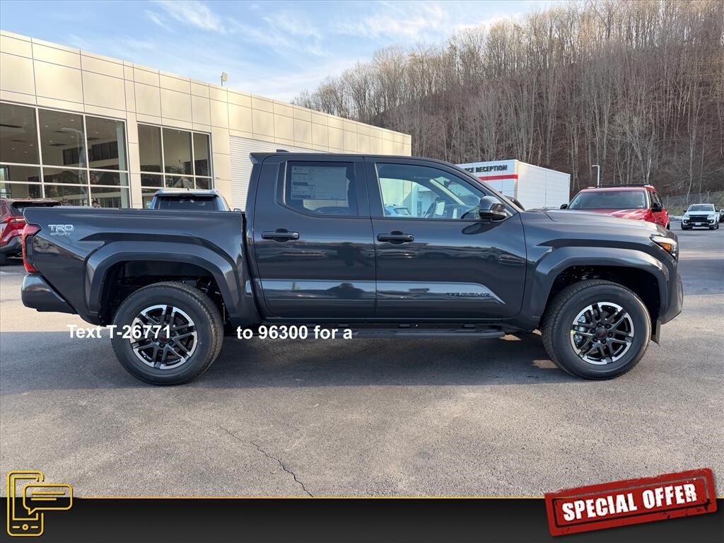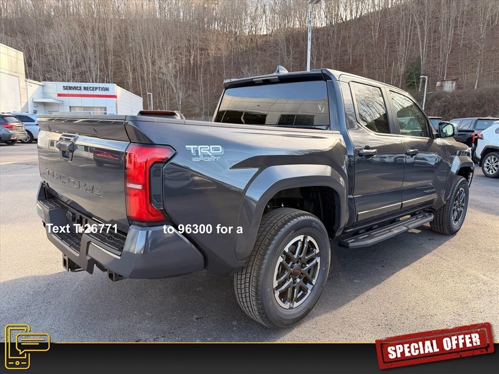 LIFE TIME NO CHARGE STATE INSPECTIONS FOR WEST VIRGINIA AND VIRGINIA RESIDENTS, NEW ARRIVAL, Tacoma TRD Sport, 4D Double Cab, 2.4L 4-Cylinder, 8-Speed Automatic, 4WD, Underground, Boulder/Black Fabric W/Sm Cloth, All Weather Floor Liners, Apple CarPlay/Android Auto, Body Side Molding, Cast Aluminum Running Boards, Heated Seats, JBL Premium Audio, Remote keyless entry, Spray-on Bed Liner, TRD Sport Package.
