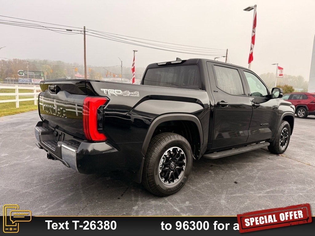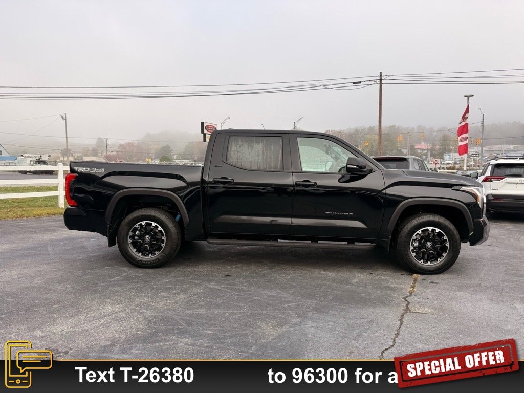 LIFE TIME NO CHARGE STATE INSPECTIONS FOR WEST VIRGINIA AND VIRGINIA RESIDENTS, NEW ARRIVAL, Tundra SR5, 4D CrewMax, 3.4L V6, 10-Speed Automatic, 4WD, Midnight Black Metallic, Black Fabric Cloth, All Weather Floor Liners (TMS), Apple CarPlay/Android Auto, Blind Spot Monitor w/Lane Change Assist, Parking Support Alert/Brake, Radio: Audio Multimedia System, Safety Connect, SR5 Convenience Package, TRD Off-Road Package, Wheels: 18" TRD Off-Road Alloy.