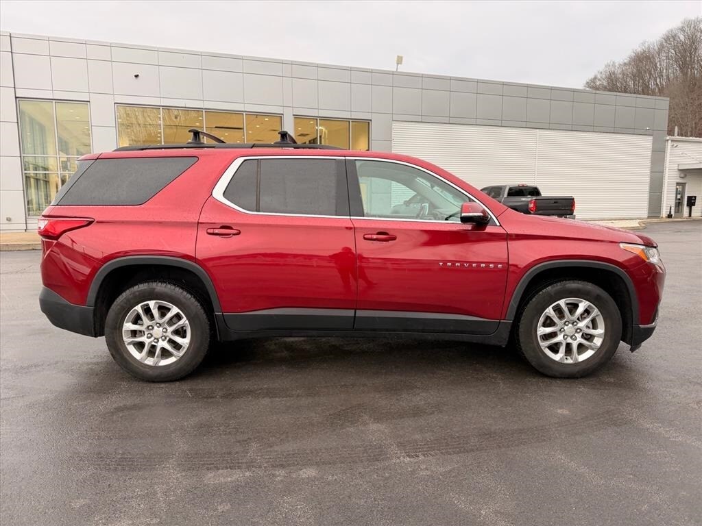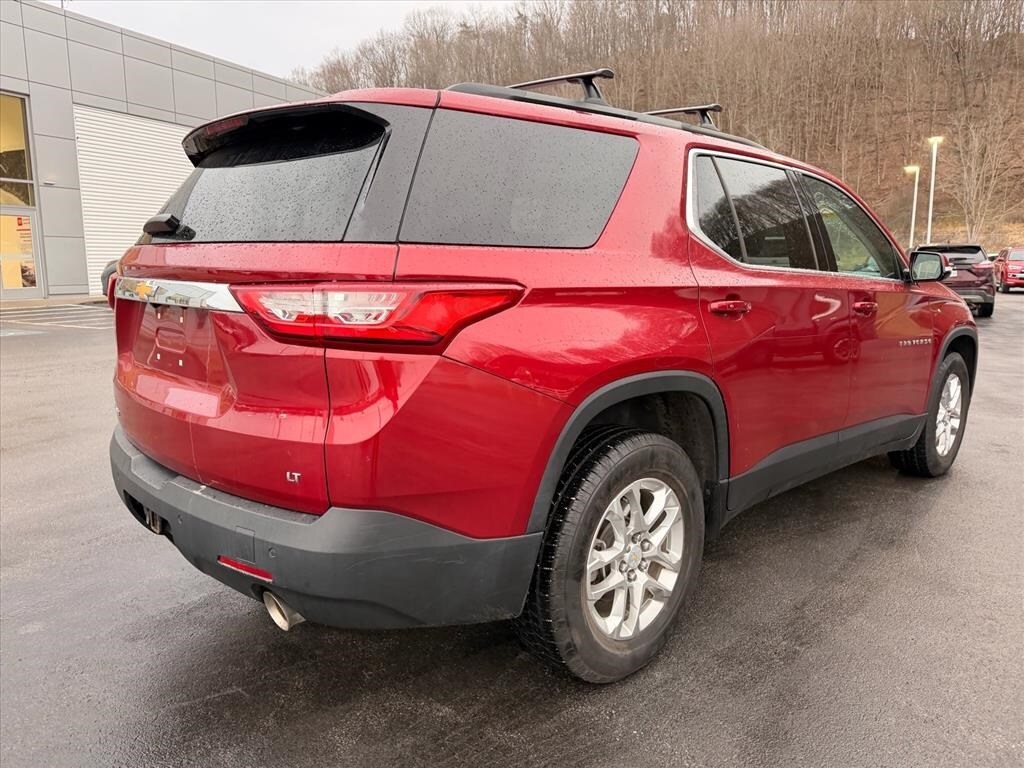 Front License Plate Bracket Mounting Package, Preferred Equipment Group 3LT, Trailering Equipment (Heavy-Duty Cooling System), Traverse 3LT, 4D Sport Utility, 3.6L V6 SIDI VVT, 9-Speed Automatic, AWD, Cajun Red Tintcoat, Gray Leather, 3.49 Axle Ratio, 3rd row seats: split-bench, 4-Wheel Disc Brakes, 6 Speakers, 7-Passenger Seating (2-2-3 Seating Configuration), ABS brakes, Air Conditioning, Alloy wheels, AM/FM radio: SiriusXM, Apple CarPlay/Android Auto, Automatic temperature control, Brake assist, Bumpers: body-color, Compass, Delay-off headlights, Driver door bin, Driver vanity mirror, Dual front impact airbags, Dual front side impact airbags, Electronic Stability Control, Emergency communication system, Four wheel independent suspension, Front anti-roll bar, Front Bucket Seats, Front Center Armrest, Front dual zone A/C, Front fog lights, Front reading lights, Fully automatic headlights, Garage door transmitter, Heated door mirrors, Heated front seats, High-Intensity Discharge Headlights, Illuminated entry, Leather-Appointed Seat Trim, Low tire pressure warning, Occupant sensing airbag, Outside temperature display, Overhead airbag, Overhead console, Panic alarm, Passenger door bin, Passenger vanity mirror, Power door mirrors, Power driver seat, Power Liftgate, Power passenger seat, Power steering, Power windows, Premium audio system: Chevrolet MyLink, Radio data system, Radio: Chevrolet Infotainment AM/FM w/8" Screen, Rear air conditioning, Rear anti-roll bar, Rear reading lights, Rear window defroster, Rear window wiper, Remote keyless entry, Roof rack: rails only, Security system, SiriusXM Radio, Speed control, Speed-sensing steering, Spoiler, Steering wheel mounted audio controls, Tachometer, Telescoping steering wheel, Tilt steering wheel, Traction control, Trip computer, Turn signal indicator mirrors, Variably intermittent wipers, Voltmeter, and Wheels: 18" Bright Silver Painted Aluminum.