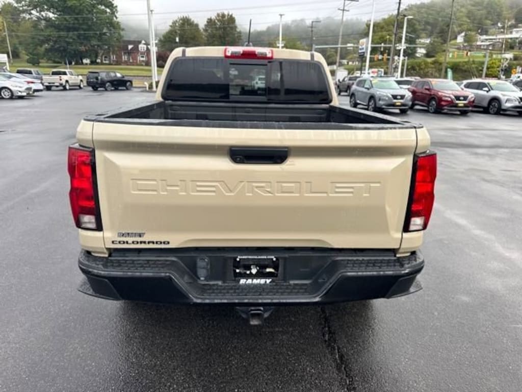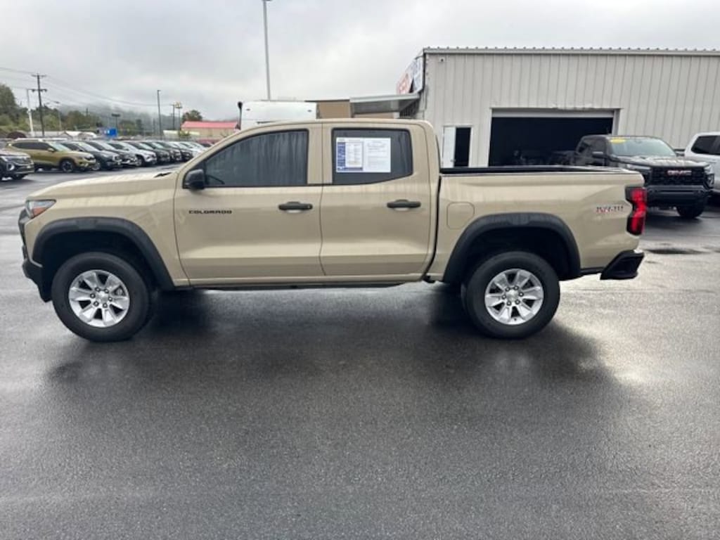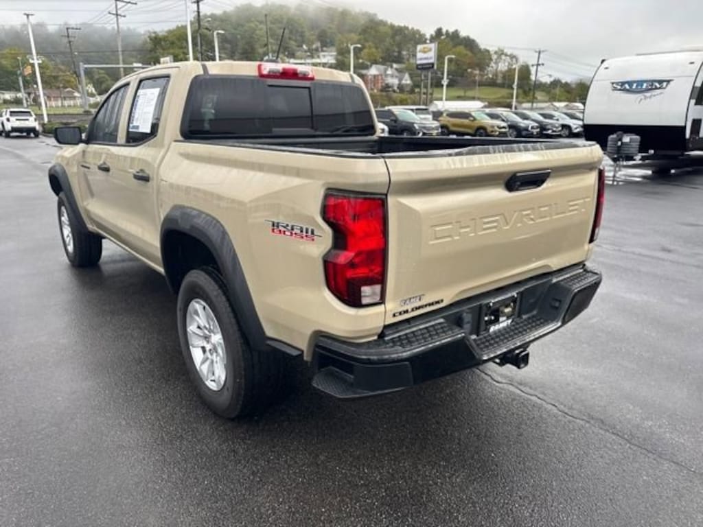 Colorado Trail Boss, 4D Crew Cab, 2.7L Turbo, 8-Speed Automatic, 4WD, Sand Dune Metallic, Black Cloth, 4-Wheel Disc Brakes, 8-Way Power Driver Seat Adjuster, ABS brakes, Advanced Trailering Package, Automatic Emergency Braking, Black Nameplates (LPO), Chevrolet Performance Black Exhaust Tip (LPO), Chevy Safety Assist, Dark Essentials Package (LPO), Door Sill Plates (LPO), Electronic Automatic Cruise Control, EZ-Lift & Lower Tailgate, Following Distance Indicator, Forward Collision Alert, Front Pedestrian & Bicyclist Braking, Heavy-Duty Trailering Package, Integrated Trailer Brake Controller, IntelliBeam Automatic High Beam On/Off, Lane Keep Assist w/Lane Departure Warning, Manual Rear-Sliding Window, Navigation System, Power Driver Lumbar Control Seat Adjuster, Preferred Equipment Group 0TR, Rear-Window Electric Defogger, StowFlex Tailgate Storage Compartment, Tailgate Keyed Cylinder Lock, Trail Boss Convenience Package, Trail Boss Convenience Package II, Trailering App, Wheels: 20 Black (LPO), Wheels: 20 x 9 Aluminum Transit.