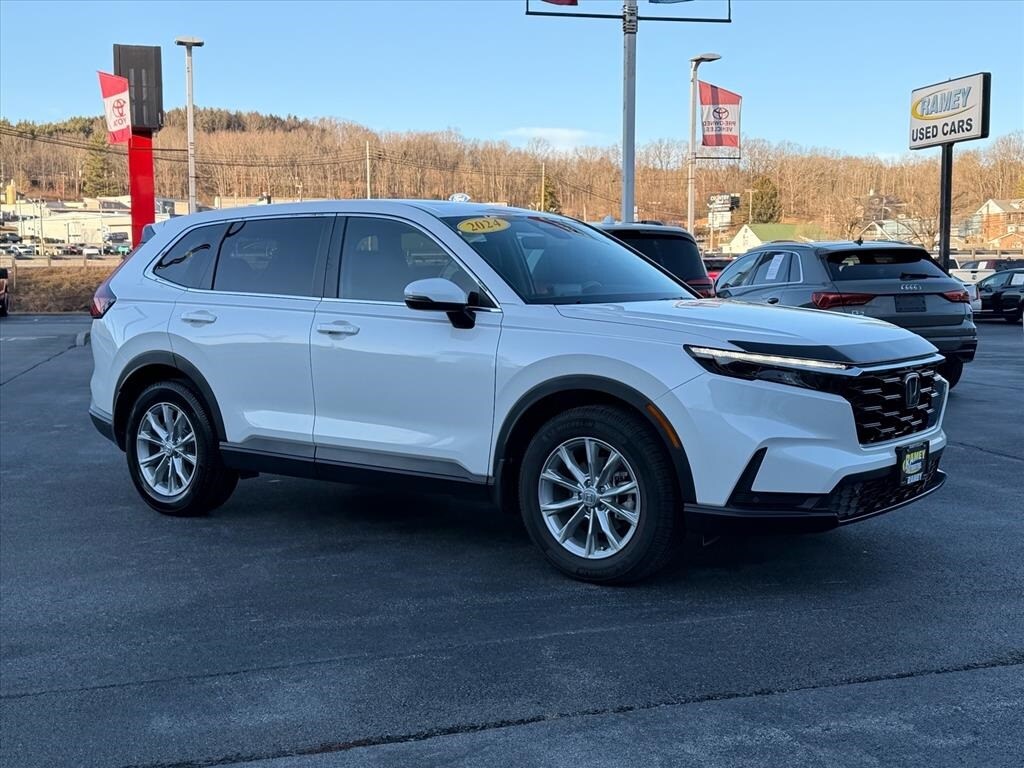 CR-V EX-L, 4D Sport Utility, 1.5L I4 DOHC 16V, CVT, AWD, White, Leather, Automatic temperature control, Blind Spot Information (BSI) System warning, Front dual zone A/C, Power driver seat, Power Liftgate, Power moonroof, 4-Wheel Disc Brakes, 5.64 Axle Ratio, 8 Speakers, ABS brakes, Adaptive Cruise Control: Adaptive Cruise Control (ACC) with Low-Speed Follow, Air Conditioning, Alloy wheels, AM/FM radio: SiriusXM, Auto High-beam Headlights, Auto-dimming Rear-View mirror, Brake assist, Bumpers: body-color, Compass, Delay-off headlights, Driver door bin, Driver vanity mirror, Dual front impact airbags, Dual front side impact airbags, Electronic Stability Control, Exterior Parking Camera Rear, Four wheel independent suspension, Front anti-roll bar, Front Bucket Seats, Front Center Armrest, Front reading lights, Fully automatic headlights, Heated door mirrors, Heated Front Bucket Seats, Heated front seats, Illuminated entry, Knee airbag, Leather Seat Trim, Leather Shift Knob, Leather steering wheel, Low tire pressure warning, Memory seat, Occupant sensing airbag, Outside temperature display, Overhead airbag, Overhead console, Panic alarm, Passenger door bin, Passenger vanity mirror, Power door mirrors, Power passenger seat, Power steering, Power windows, Radio data system, Radio: 320-Watt AM/FM/HD/SiriusXM Audio System, Rear anti-roll bar, Rear reading lights, Rear seat center armrest, Rear side impact airbag, Rear window defroster, Rear window wiper, Remote keyless entry, Security system, Speed control, Speed-sensing steering, Speed-Sensitive Wipers, Split folding rear seat, Spoiler, Steering wheel mounted audio controls, Tachometer, Telescoping steering wheel, Tilt steering wheel, Traction control, Trip computer, Turn signal indicator mirrors, Variably intermittent wipers, Wheels: 18" Sparkle Silver Metallic, and Wireless Apple CarPlay/Wireless Android Auto.