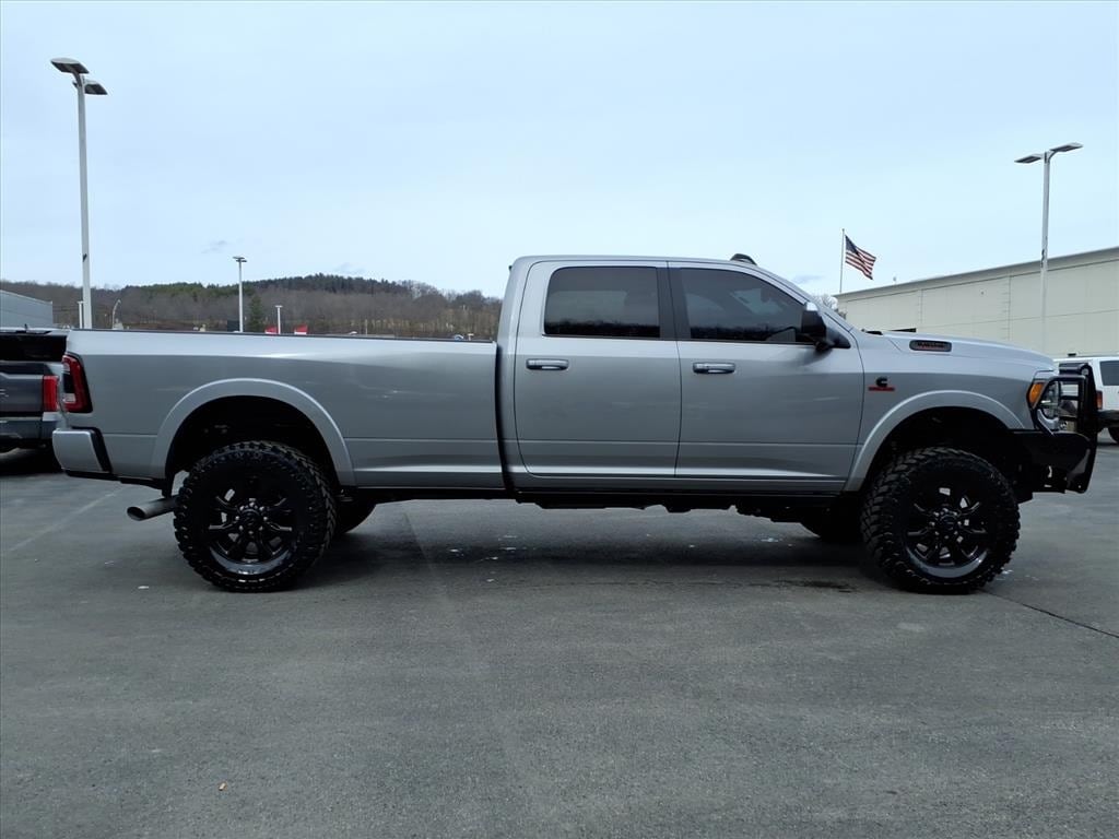 Heavy Duty Snow Plow Prep Group, Night Edition (Black Exterior Mirrors, Black Exterior Truck Badging, Black Grille Limited, Black Headlamp Bezels, Black Ram Head Tailgate Badge, Black Tail Lamp Bezels, Black Wheel Center Hub, Body Color Door Handles, Body Color Grille Surround, Painted Front Bumper, Painted Rear Bumper, Power Black Tow Mirrors w/Convex Spotter & Memory, and Tow Hooks), Quick Order Package 2HM Limited, Towing Technology Group (Surround View Camera System), 1-Year SiriusXM Guardian Trial, 10 Speakers, 12" Touchscreen Display, 220 Amp Alternator, 3.73 Axle Ratio, 4-Wheel Disc Brakes, 4G LTE Wi-Fi Hot Spot, ABS brakes, Active Noise Control System, Adjustable pedals, Air Conditioning, Alloy wheels, AM/FM radio: SiriusXM with 360L, Apple CarPlay, Apple CarPlay/Android Auto, Audio memory, Auto High-beam Headlights, Auto-dimming Rear-View mirror, Automatic temperature control, Bodyside moldings, Brake assist, Bumpers: chrome, Clearance Lamps, Compass, CTR Stop Lamp w/Cargo View Camera, Dash Pass Thru Wire Circuits, Delay-off headlights, Disassociated Touchscreen Display, Driver door bin, Driver vanity mirror, Dual front impact airbags, Dual front side impact airbags, Electronic Stability Control, Electronically Controlled Throttle, Emergency communication system: SiriusXM Guardian, Front anti-roll bar, Front Bucket Seats, Front Center Armrest w/Storage, Front dual zone A/C, Front fog lights, Front License Plate Bracket, Front reading lights, Fully automatic headlights, Garage door transmitter, Genuine wood console insert, Genuine wood dashboard insert, Genuine wood door panel insert, Google Android Auto, GPS Antenna Input, GPS Navigation, HD Radio, Heated door mirrors, Heated front seats, Heated rear seats, Heated steering wheel, I/P Mounted Auxiliary Switches, Illuminated entry, Integrated Voice Command w/Bluetooth, Leather steering wheel, Limited Leather Bucket Seats, Low tire pressure warning, Manufacturer's Statement of Origin, Memory seat, MOPAR Deployable Bed Step, Navigation System, Occupant sensing airbag, Outside temperature display, Overhead airbag, Overhead console, Panic alarm, ParkView Rear Back-Up Camera, Passenger door bin, Passenger vanity mirror, Pedal memory, Power door mirrors, Power driver seat, Power passenger seat, Power steering, Power windows, Radio data system, Radio: Uconnect 12.0 w/Navigation, Rain sensing wipers, Rear reading lights, Rear seat center armrest, Rear step bumper, Rear Wheelhouse Liners, Rear window defroster, Remote keyless entry, Security system, Selectable Tire Fill Alert, SiriusXM Satellite Radio, SiriusXM Traffic Plus, SiriusXM Travel Link, SiriusXM w/360L, Speed control, Split folding rear seat, Steering wheel mounted audio controls, Tachometer, Tilt steering wheel, Tip Start, Traction control, Trip computer, Turn signal indicator mirrors, Variably intermittent wipers, Ventilated front seats, Voltmeter, Wheels: 20" x 8.0" Cast Aluminum Black, and Wheels: 20" x 8.0" Satin Carbon w/Chrome Insert.