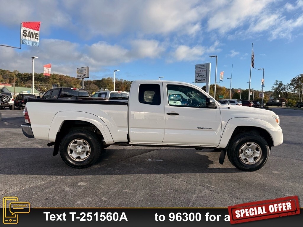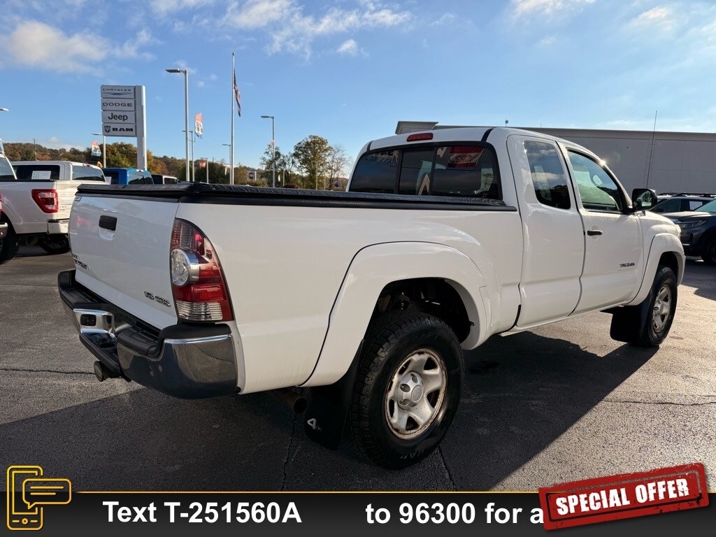 Tacoma SR5 V6, 4D Access Cab, 4.0L V6 EFI DOHC 24V, 5-Speed Automatic with Overdrive, 4WD, Super White, Cloth, ABS brakes, Electronic Stability Control, Illuminated entry, Low tire pressure warning, Traction control, 16" x 7J+30 Style Steel Wheels, 3.727 Axle Ratio, 6 Speakers, Air Conditioning, AM/FM radio, AM/FM/CD w/6 Speakers, Anti-whiplash front head restraints, Brake assist, CD player, Driver door bin, Dual front impact airbags, Dual front side impact airbags, Fabric Seat Trim, Front anti-roll bar, Front Bucket Seats, Front Center Armrest, Front reading lights, Front wheel independent suspension, Occupant sensing airbag, Overhead airbag, Overhead console, Passenger door bin, Passenger vanity mirror, Power steering, Power windows, Rear step bumper, Speed-sensing steering, Tachometer, Telescoping steering wheel, and Tilt steering wheel.