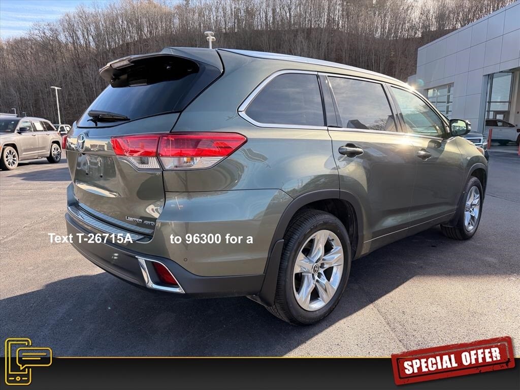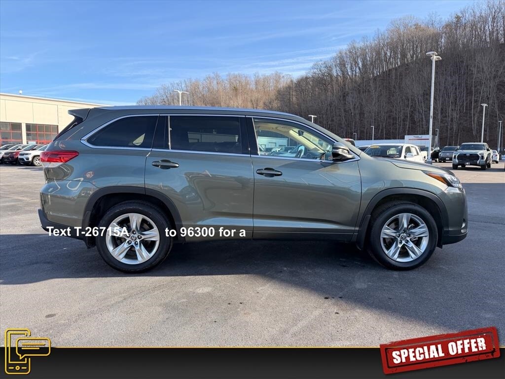 LIFE TIME NO CHARGE STATE INSPECTIONS FOR WEST VIRGINIA AND VIRGINIA RESIDENTS, Highlander Limited, 4D Sport Utility, 3.5L V6, 8-Speed Automatic Electronic with ECT-i, AWD, Alumina Jade Metallic, Almond w/Leather Seat Trim, Auto High-beam Headlights, Exterior Parking Camera Rear, Fully automatic headlights, Heated front seats, Memory seat, Navigation System, Power driver seat, Power Liftgate, Power moonroof, Rear Parking Sensors, Steering wheel mounted audio controls.