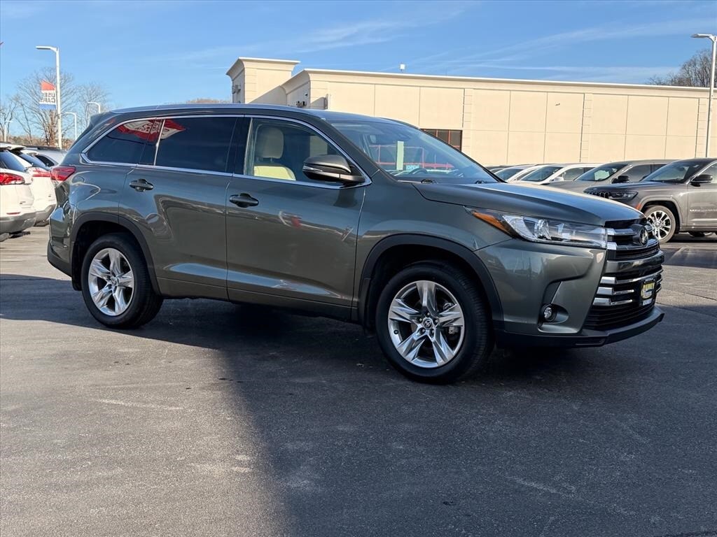 Highlander Limited, 4D Sport Utility, 3.5L V6, 8-Speed Automatic Electronic with ECT-i, AWD, Alumina Jade Metallic, Almond w/Leather Seat Trim, Auto High-beam Headlights, Exterior Parking Camera Rear, Fully automatic headlights, Heated front seats, Memory seat, Navigation System, Power driver seat, Power Liftgate, Power moonroof, Rear Parking Sensors, Steering wheel mounted audio controls, 12 Speakers, 3.003 Axle Ratio, 3rd row seats: split-bench, 4-Wheel Disc Brakes, ABS brakes, Air Conditioning, Alloy wheels, AM/FM radio: SiriusXM, Auto-dimming Rear-View mirror, Automatic temperature control, Brake assist, Bumpers: body-color, CD player, Delay-off headlights, Driver door bin, Driver vanity mirror, Dual front impact airbags, Dual front side impact airbags, Electronic Stability Control, Four wheel independent suspension, Front anti-roll bar, Front Bucket Seats, Front Center Armrest, Front dual zone A/C, Front fog lights, Front reading lights, Garage door transmitter, Heated door mirrors, Heated/Ventilated Front Bucket Seats, Illuminated entry, Knee airbag, Leather Shift Knob, Low tire pressure warning, Occupant sensing airbag, Outside temperature display, Overhead airbag, Overhead console, Panic alarm, Passenger door bin, Passenger vanity mirror, Perforated Leather Seat Trim, Power door mirrors, Power passenger seat, Power steering, Power windows, Radio: Entune Premium JBL Audio w/Nav & App Suite, Rear air conditioning, Rear anti-roll bar, Rear reading lights, Rear window defroster, Rear window wiper, Reclining 3rd row seat, Remote keyless entry, Roof rack: rails only, Security system, Speed control, Speed-sensing steering, Split folding rear seat, Spoiler, Tachometer, Telescoping steering wheel, Tilt steering wheel, Traction control, Trip computer, Turn signal indicator mirrors, Variably intermittent wipers, Ventilated front seats, and Wheels: 19" 5-Spoke Chromtec Alloy.