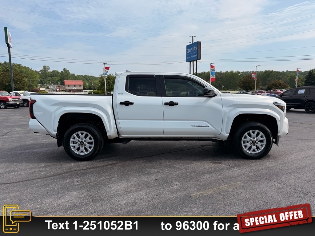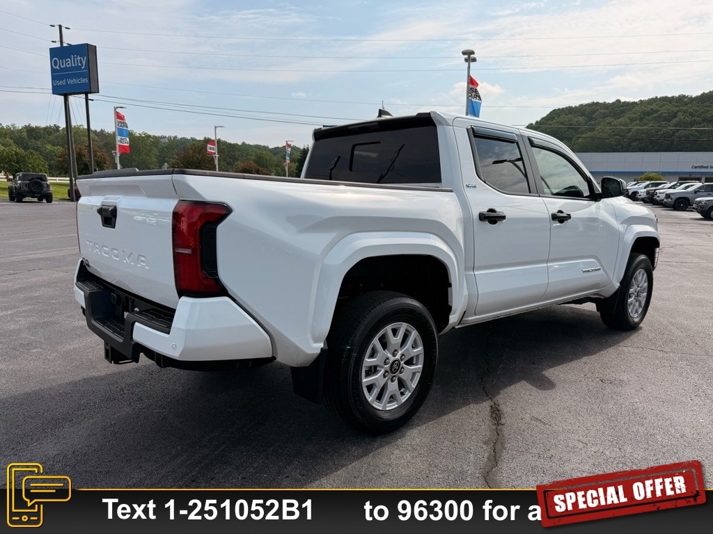 Tacoma SR5, 4D Double Cab, 2.4L 4-Cylinder, 8-Speed Automatic, 4WD, White, Black w/Fabric Seat Trim, ABS brakes, Alloy wheels, Electronic Stability Control, Heated door mirrors, Illuminated entry, Low tire pressure warning, Remote keyless entry, Traction control.