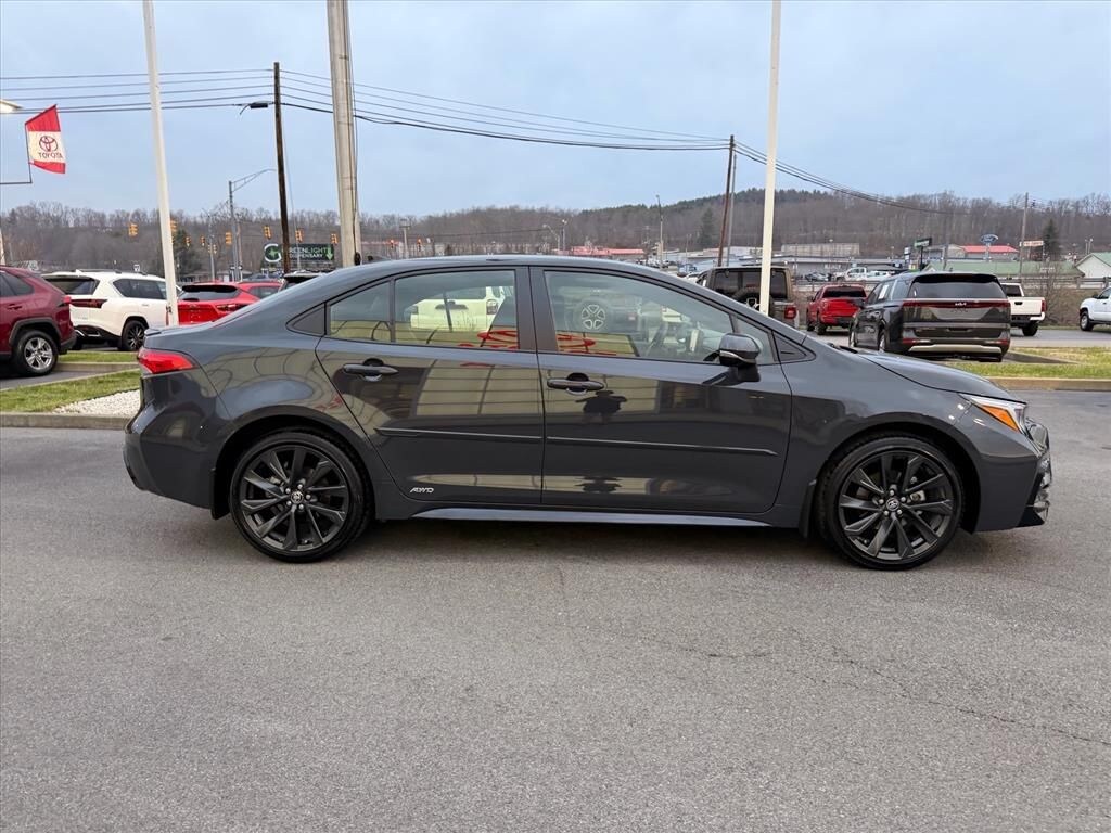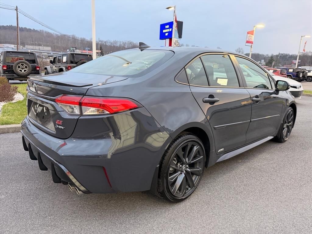 Corolla Hybrid SE, 4D Sedan, 1.8L DOHC 16V VVT, eCVT, AWD, Underground, Black/Red w/Fabric Seat Trim, ABS brakes, Active Cruise Control, Alloy wheels, Electronic Stability Control, Heated door mirrors, Illuminated entry, Low tire pressure warning, Remote keyless entry, Traction control, 4-Wheel Disc Brakes, 6 Speakers, Air Conditioning, AM/FM radio: SiriusXM, Apple CarPlay/Android Auto, Auto High-beam Headlights, Automatic temperature control, Brake assist, Bumpers: body-color, Delay-off headlights, Driver door bin, Driver vanity mirror, Dual front impact airbags, Dual front side impact airbags, Emergency communication system: Safety Connect (up to 10-year trial subscription), Exterior Parking Camera Rear, Fabric Seat Trim, Four wheel independent suspension, Front anti-roll bar, Front Bucket Seats, Front Center Armrest, Front reading lights, Fully automatic headlights, Knee airbag, Leather steering wheel, Occupant sensing airbag, Outside temperature display, Overhead airbag, Panic alarm, Passenger door bin, Passenger vanity mirror, Power door mirrors, Power steering, Power windows, Premium Front Sport Seats, Radio data system, Radio: 8" Toyota Audio Multimedia, Rear anti-roll bar, Rear seat center armrest, Rear side impact airbag, Rear window defroster, Speed control, Split folding rear seat, Spoiler, Steering wheel mounted audio controls, Tachometer, Telescoping steering wheel, Tilt steering wheel, Trip computer, Turn signal indicator mirrors, Variably intermittent wipers, and Wheels: 18" Graphite-Colored Alloy.